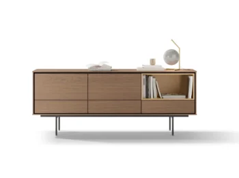 UNIVERSAL es un sistema integrado de aparadores y artesas modulares caracterizado por su extrema versatilidad. Aparadores y muebles para TV que cambian de aspecto al variar sus dimensiones y acabados. Volúmenes compactos con puertas lacadas o de madera, lisas o trabajadas con diseños de ondas, rombos y cuadrados que realzan su elegancia y sofisticación. Combinando estructura, puertas, bases y acabados, hay múltiples posibilidades de personalización. Tapa superfina de gres acoplado a ras de las puertas.